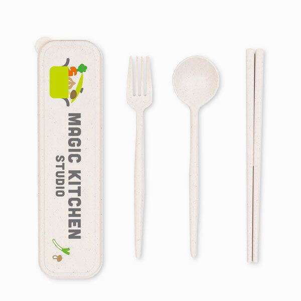 カトラリーセットの素材には、小麦の収穫後に発生する麦わらを原料に配合しており
