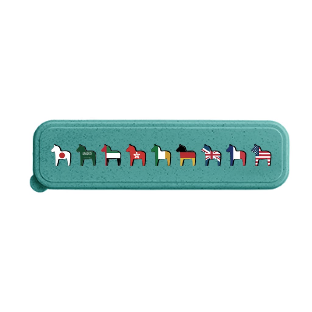 国旗風ダーラナホースをデザインした麦わら素材を使用したエコカトラリーセットです。